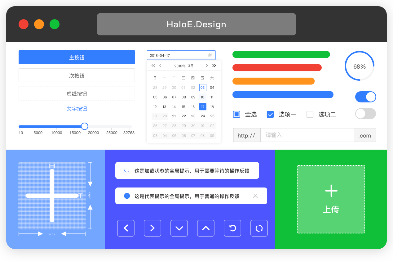 HaloE基于[普适]、[多元]、[开放]、[共生]的设计价值观,试图建立一套企业级设计体系。提供统一的、符合移动云设计企标规范的前端组件库,提升开发效率,降低页面实现难度。